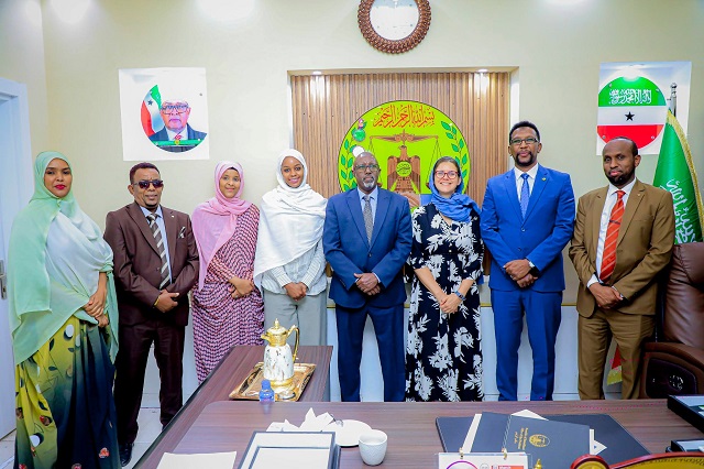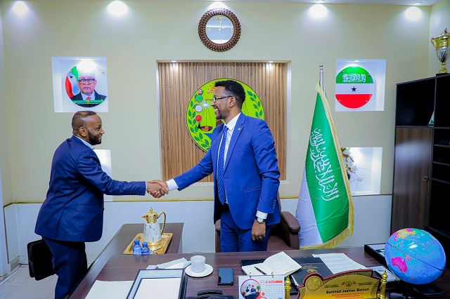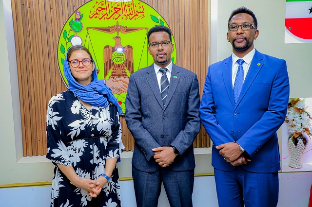 HARGEISA, Somaliland (HORN POST) — Somaliland’s Minister of Information, Culture and Awareness, Barkhad Jama Batuun, held talks with senior representatives from DT Global and the Swiss Agency for Development and Cooperation (SDC) to strengthen cooperation on cultural development and preservation initiatives.